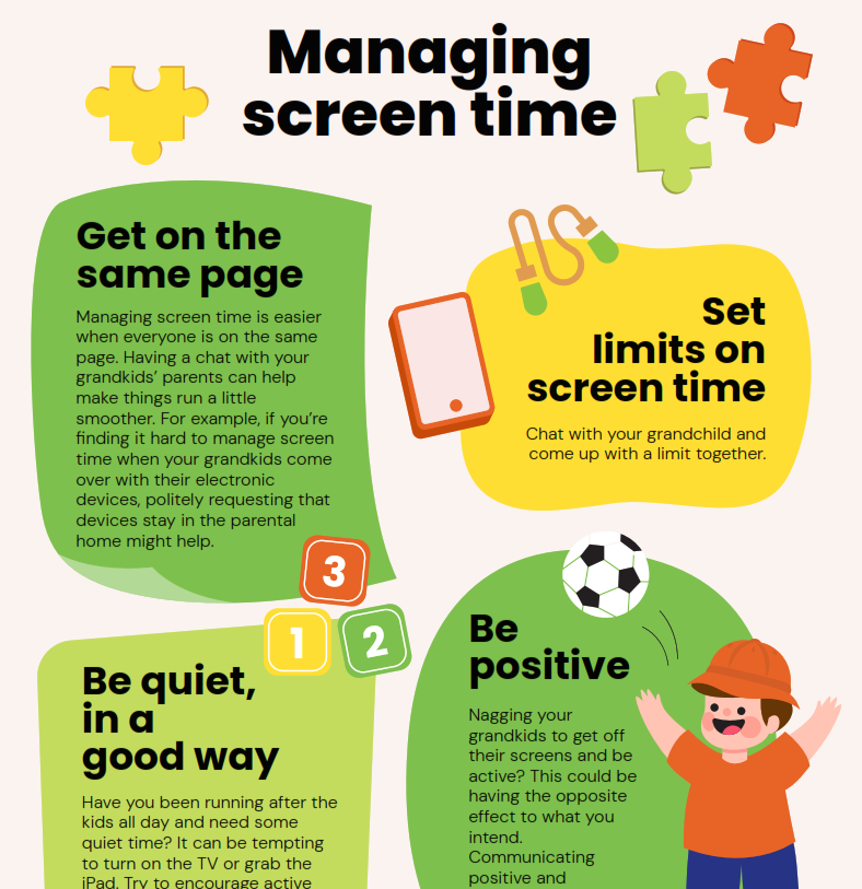 Budden, T., Coall, D., Jackson, B., Christian, H., Nathan, A., & Jongenelis, M. I. (2024). Barriers and enablers to promoting grandchildren’s physical activity and reducing screen time: a qualitative study with Australian grandparents. BMC Public Health, 1620. doi: 10.1186/s12889-024-19178-2.