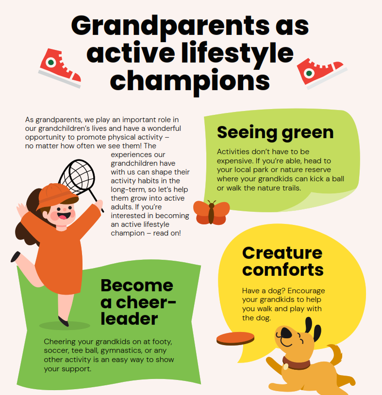 As grandparents, we play an important role in our grandchildren’s lives and have a wonderful opportunity to promote physical activity – no matter how often we see them! If you’re interested in becoming an active lifestyle champion – read on!